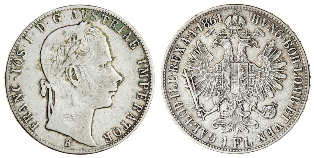 Austria, Franz Joseph (1848-1916), Florin 1861-B, Kremnitz, head right, rev. crowned double-headed eagle (KM 2219), fine