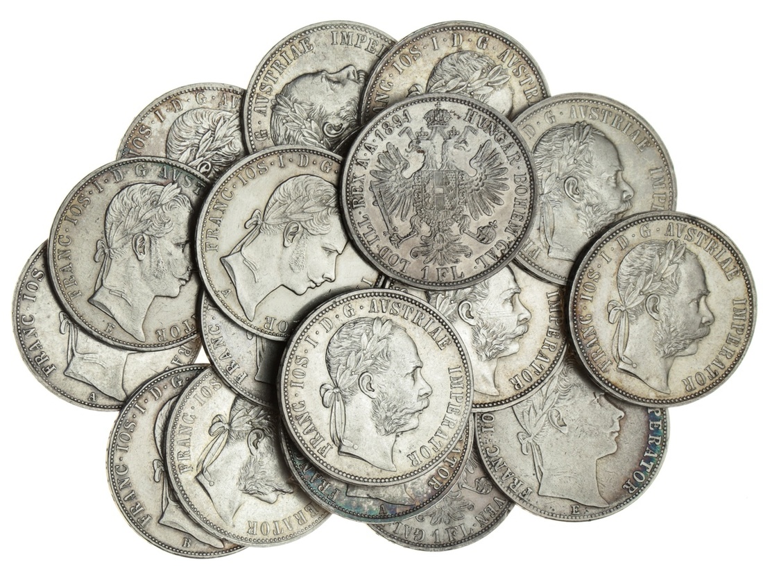Austria, Franz Joseph (1848-1916), Florins (18), Vienna 1857, 1858, 1860, 1870, 1872, 1874, 1876, 1880, 1884, 1886, 1888, 1891, Kremnitz 1858, 1859, 1864, and Karlsburg 1858, 1860, 1865 (KM 2219, 2221, 2222), Vienna pieces very fine or better, the remaining fine to good very fine (18)