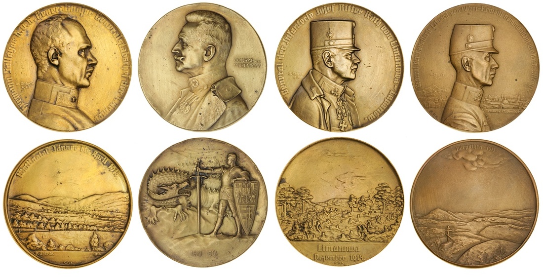 Austria, Great War 1914-1918, four bronze medals of Austrian Generals, Eduard von Bühm-Ermolli, Joseph Roth, Conrad von Hötzendorf, and Hermann Sallagar, all 65mm., first extremely fine, others brushed, very fine (4)