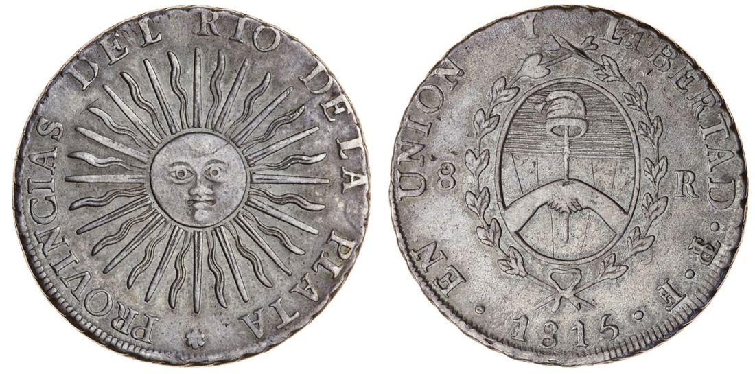 (x) Argentina, 8-Reales, 1815, Potosi, sun with rays, rev. cap in wreath (KM 14), very fine