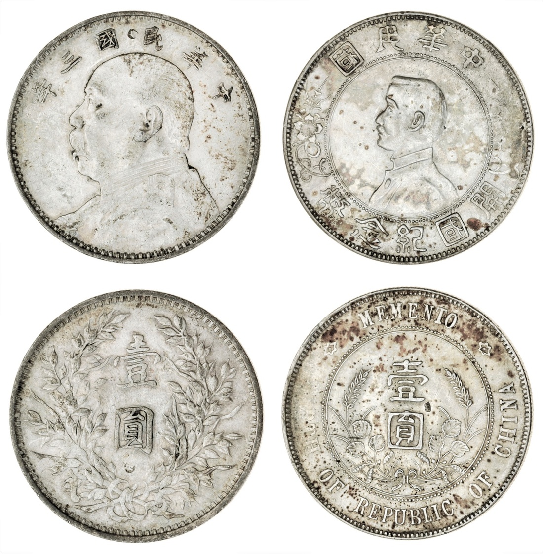 China, Republic, Dollars (2), 'Fat Man', Year 3, 1914, Yuan Shi-kai (L&M 63; Dav. 225; KM Y407); another, 1927 ~ Memento of the Republic, Sun Yat-sen (K&M 49, 6 pointed stars; KM Y318a); both with chop marks, in NGC holders, graded AU Details and UNC Details respectively (2)