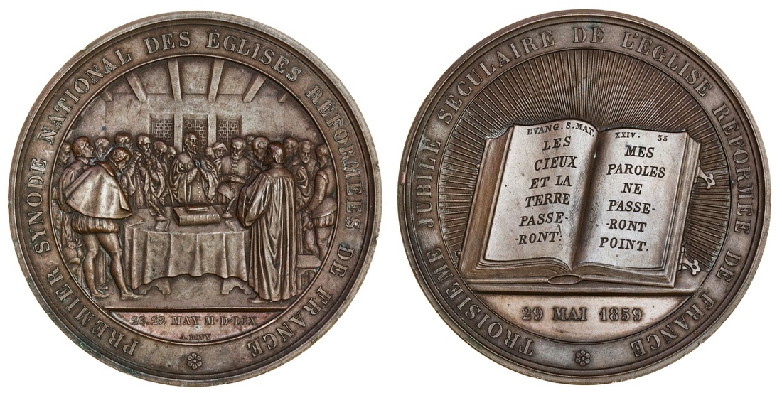 France, First Synod of the Reformed Church, AE Medal, 20 May 1859, 144.44g, stamped CUIVRE on edge, spots of verdigris, otherwise very fine