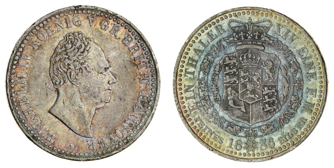Germany, Hannover, William IV (1830-37), Taler, 1836, bare head right, rev. crowned shield (Dav.665), old cabinet toning, very fine