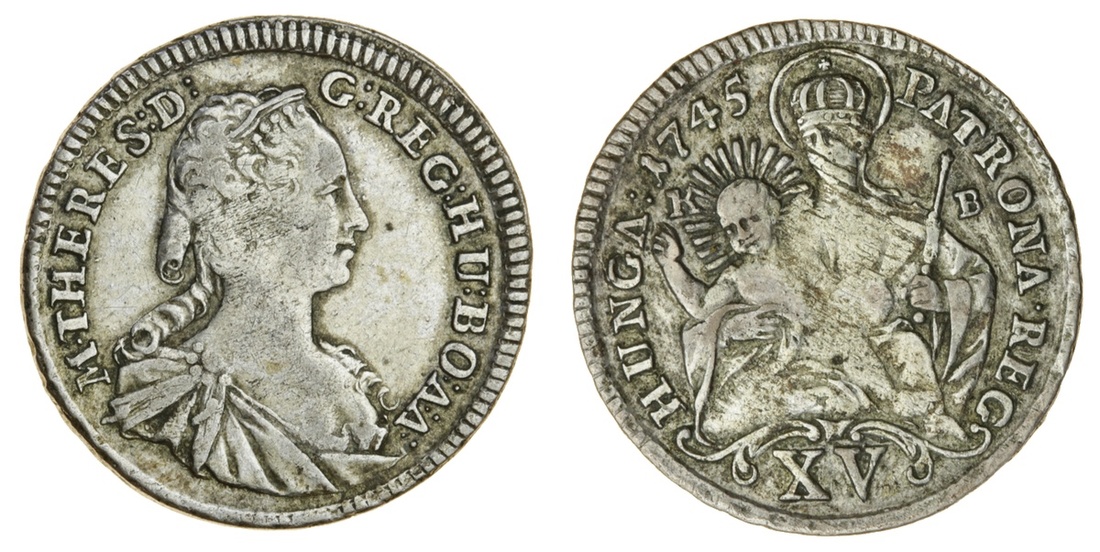 Hungary, Maria Theresa (1740-80), 15-Krajcár (15-Kreuzer), 1745 (2), bust right, rev. Madonna and Child, value below (Huszár 1711), one rubbed, fine, the other very fine