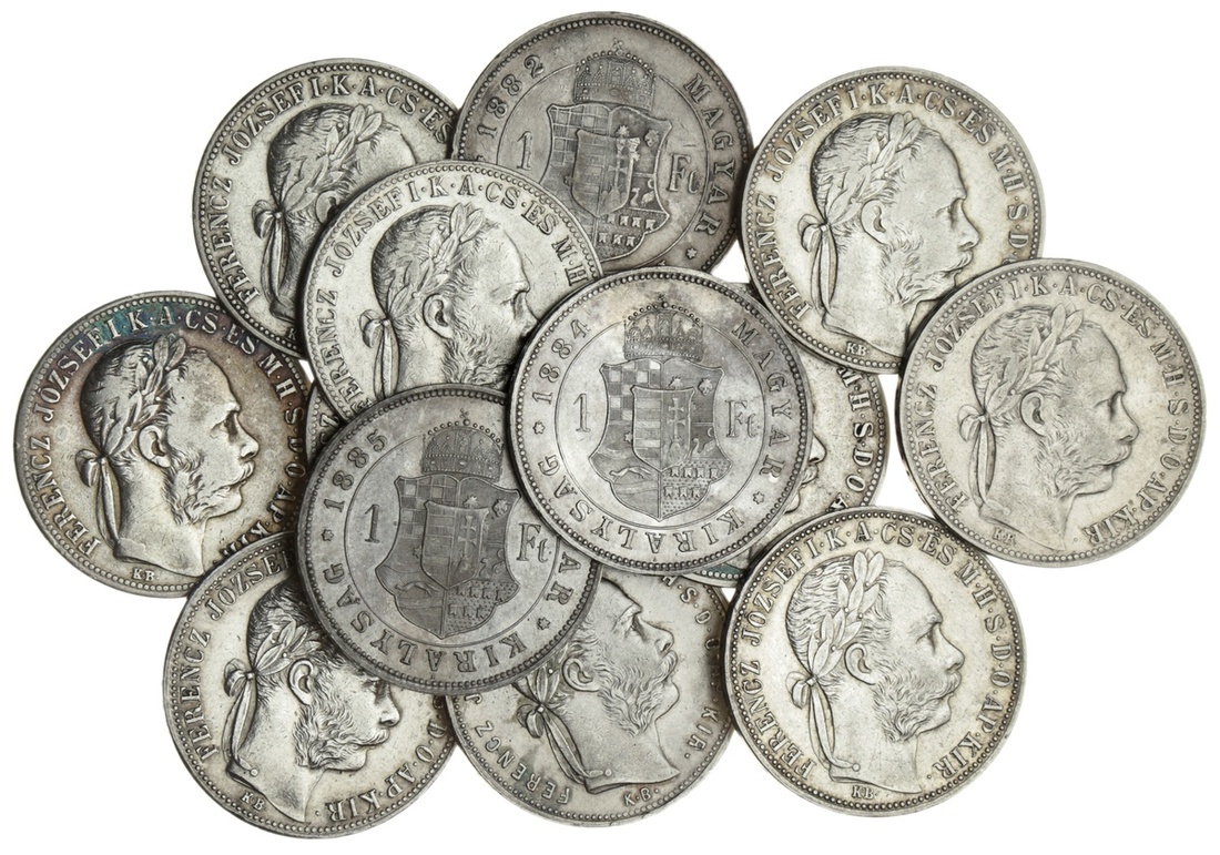 Hungary, Franz Joseph (1848-1916), Forint (13), 1881 (KM 465), 1882, 1883, 1884, 1885, 1886, 1887, 1888, 1889 (KM 469), and 1990, 1991, 1992 (KM 475), mostly very fine or better (13)