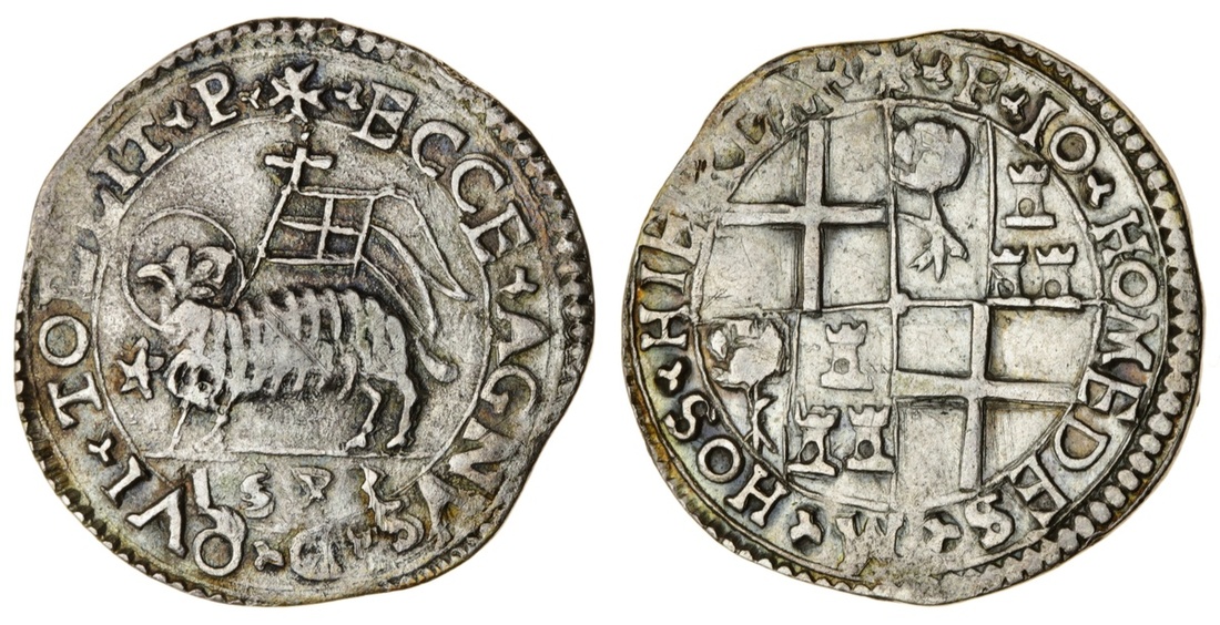 Malta, The Knights of St. John, Juan de Homedes y Coscon, 47th Grand Master (1536-53), AR 2-Tari, 1543, weight? 9h, (Restelli & Sammut 15), the 4 of date rotated 45 degrees clockwise as typical for type, a pleasingly good fine, rare