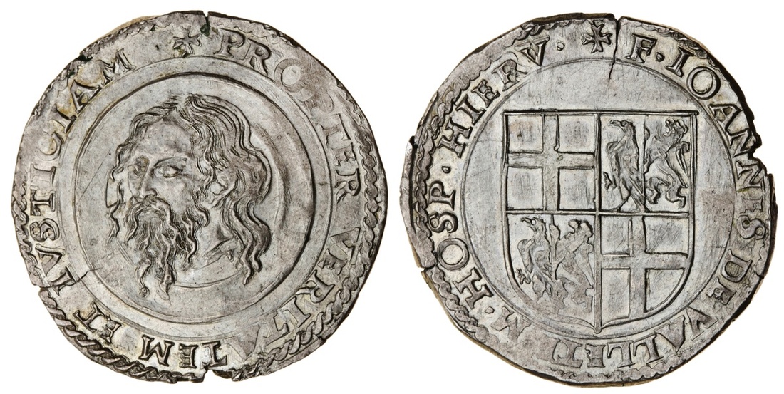Malta, The Knights of St. John, Jean Parisot de la Valette, 49th Grand Master (1557-68), AR 4-Tari, weight? 4h, legend ends HEIRV (Restelli & Sammut 22 var.), a few minor striking splits to flan, otherwise beautifully struck up and much as issued, about extremely fine, rare thus