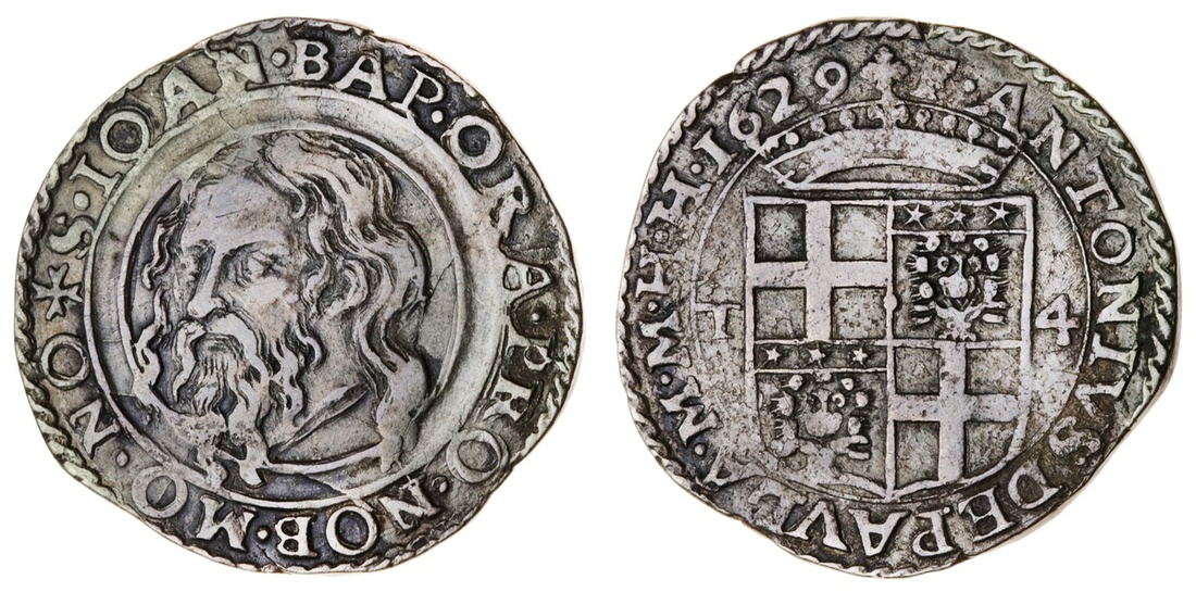 Malta, The Knights of St. John, Antoine de Paule, 56th Grand Master (1623-36), AR 4-Tari, 1629, weight? 10h (Restelli & Sammut 16), the occasional staining spot, otherwise very fine, scarce