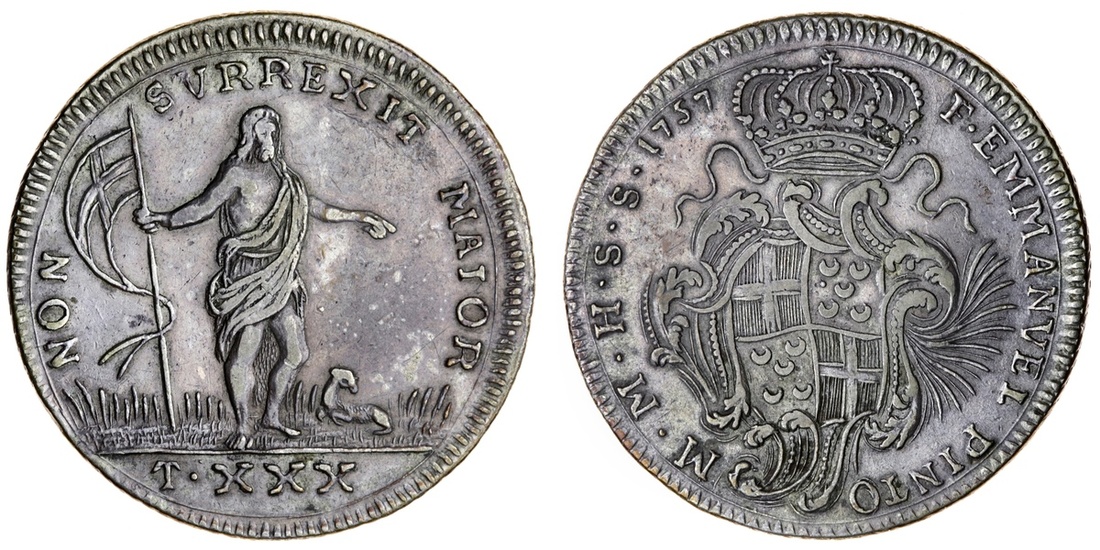 Malta, The Knights of St. John, Emmanuel Pinto de Fonseca, 68th Grand Master (1741-73), AR 30-Tari, 1757, Valetta, weight? 12h (Restelli & Sammut 66; Dav. 1600), very fine