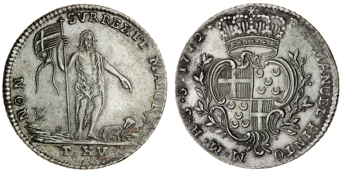 Malta, The Knights of St. John, Emmanuel Pinto de Fonseca, 68th Grand Master (1741-73), AR 15-Tari, 1772, Valetta, weight? 6h (Restelli & Sammut 121; Schembri 16), a trace of adjustment marks to periphery, otherwise sharply struck, a pleasing very fine