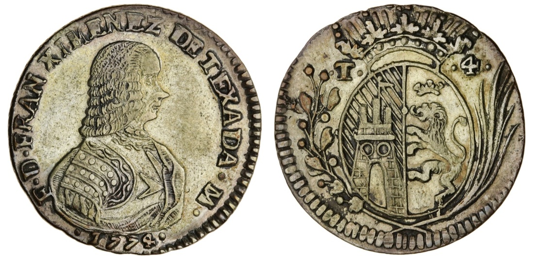 Malta, The Knights of St. John, Francisco Ximenes de Texada y Eslava, 69th Grand Master (1773-75), AR 4-Tari, 1774, Valetta, weight? 6h (Restelli & Sammut 26), slightly stained, otherwise very fine, scarce