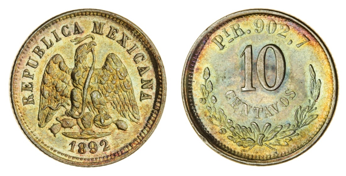 Mexico, 10-Centavos, 1893, Potosi, eagle, rev. value (KM 403.9), brilliant uncirculated with a light old tone
