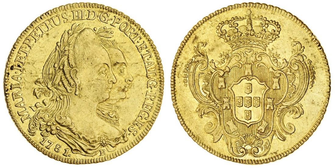 (x) Portugal, Maria I and Pedro III (1777-86), 4-Escudo, 1781, conjoined busts, rev. crowned arms (KM 271, F.107), about extremely fine with traces of lustre