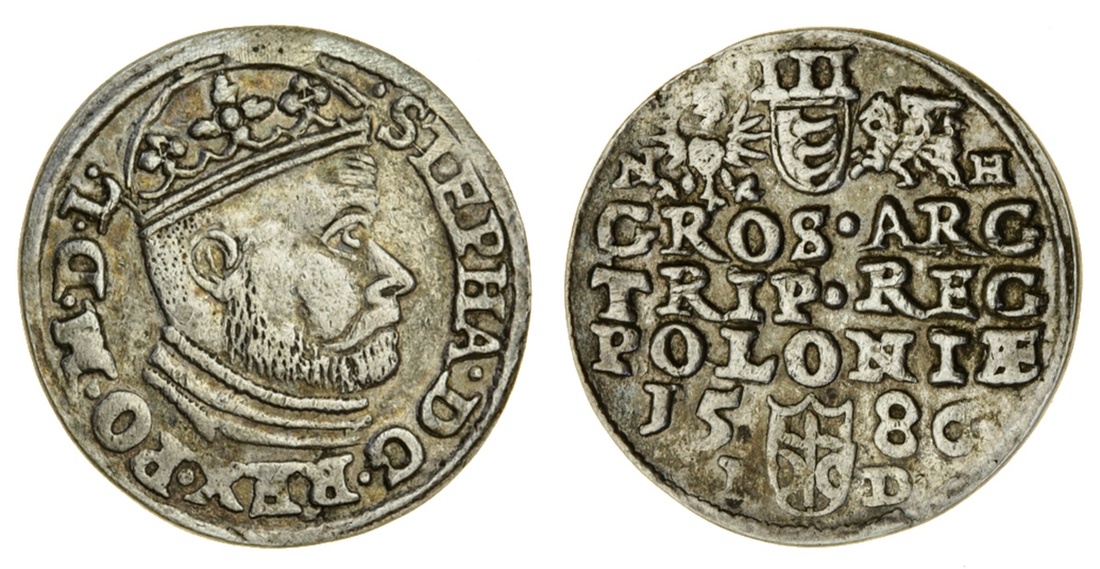 Poland, Stephan Bathory (1576-86), 3-Groschen (2), 1586 I-D, Olkusz (Iger P.86 2b), light tone, good fine; another, 1586, Riga (Kopicki 8097), small flan split, otherwise good fine (2)