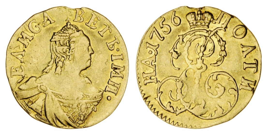 Russia, Elisabeth (1741-62), Half-Rouble / Poltina 1756, Red Mint, portrait, rev. monogram, (F.118; Bitkin 71.2), good fine / very fine, edge damage where mount removed