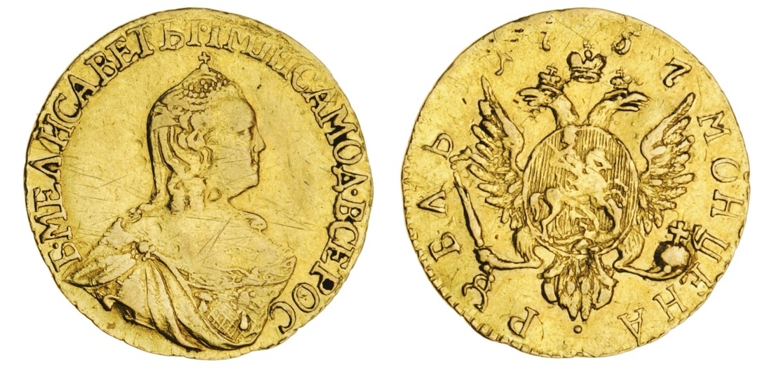 Russia, Elisabeth (1741-62), Rouble 1757/6, portrait, rev. monogram, (F.116; Bitkin 66 (R1), very fine, mount removed, scratches and small dents