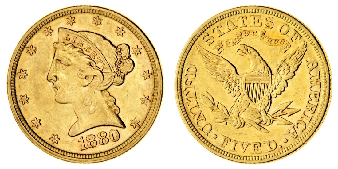 (g) USA, 1880 $5 'Liberty Head' (gold Half-Eagle), Philadelphia, by Christian Gobrecht (F.143; KM 101; NGC ID 25XA; PCGS ID 8351), residually lustrous, good very fine