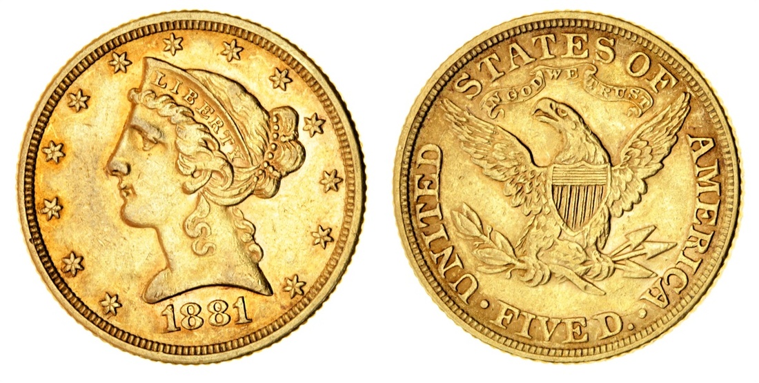 (g) USA, 1881 $5 'Liberty Head' (gold Half-Eagle), Philadelphia, by Christian Gobrecht (F.143; KM 101), good very fine