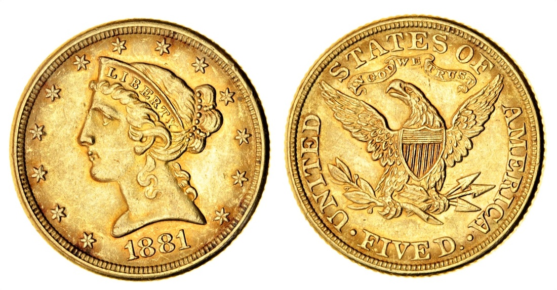 (g) USA, 1881 $5 'Liberty Head' (gold Half-Eagle), Philadelphia, by Christian Gobrecht (F.143; KM 101), good very fine