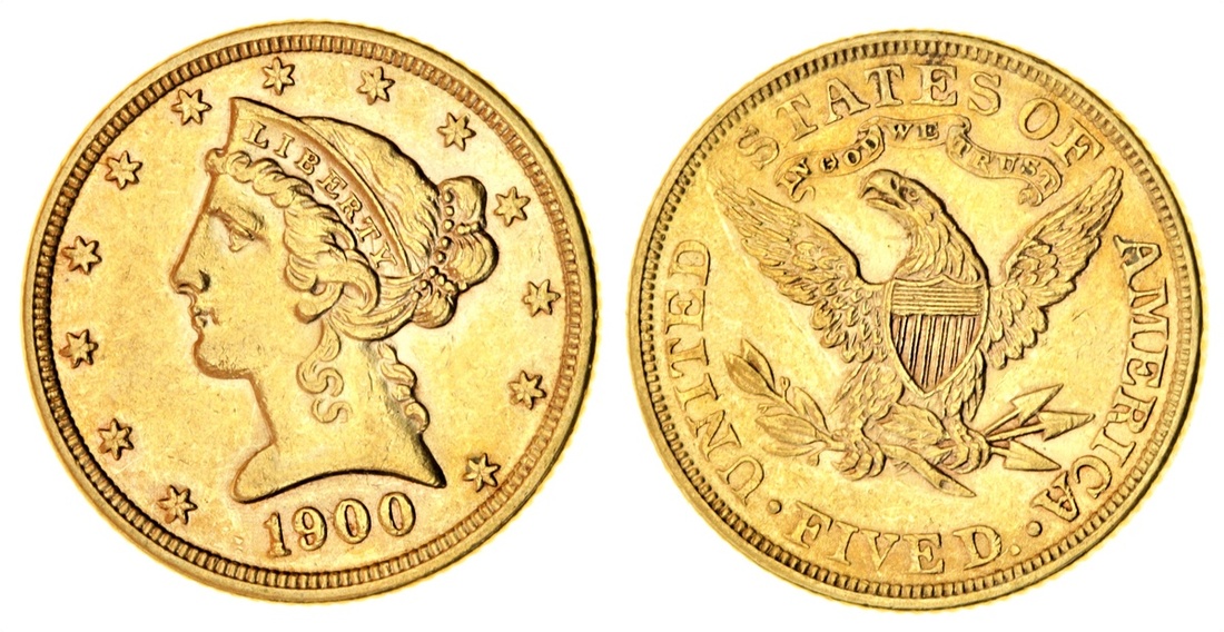 (g) USA, 1900 $5 'Liberty Head' (gold Half-Eagle), Philadelphia, by Christian Gobrecht (F.143; KM 101)