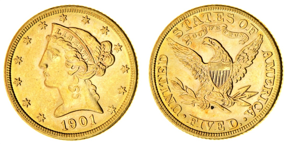 (g) USA, 1901 $5 'Liberty Head' (gold Half-Eagle), Philadelphia, by Christian Gobrecht (F.143; KM 101),