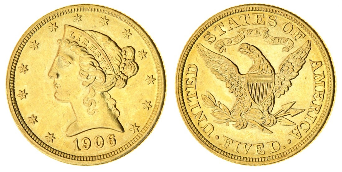 (g) USA, 1906 $5 'Liberty Head' (gold Half-Eagle), Philadelphia, by Christian Gobrecht (F.143; KM 101)