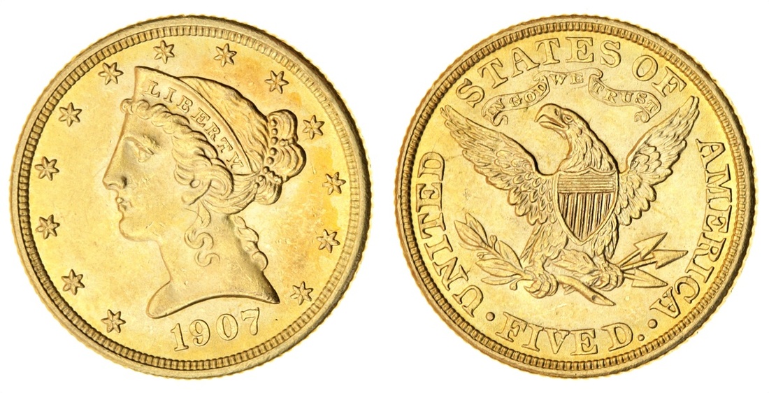 (g) USA, 1907 $5 'Liberty Head' (gold Half-Eagle), Philadelphia, by Christian Gobrecht (F.143; KM 101)