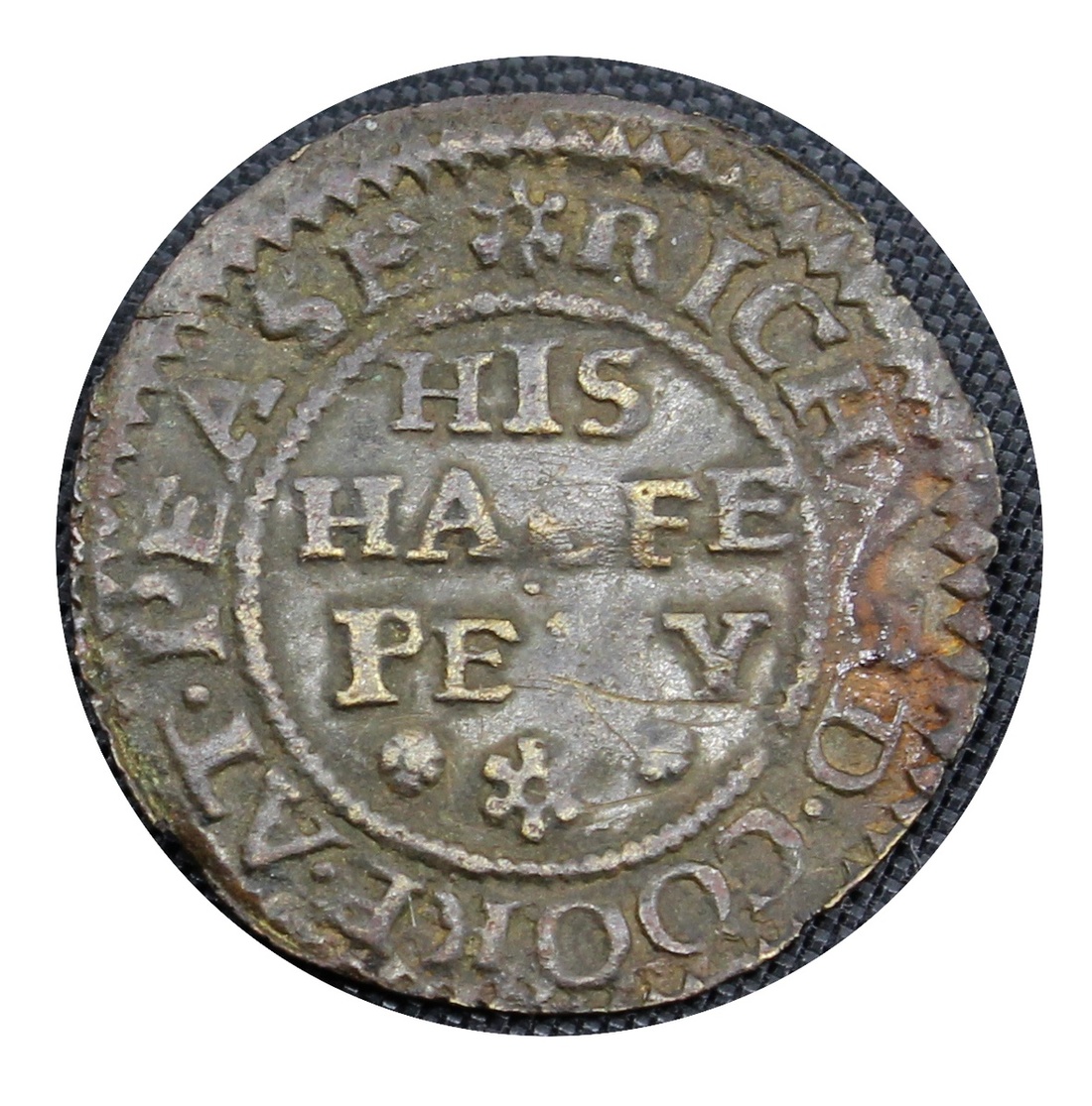 Cambridge, Pease Hill, Richard Cooke, 'His Halfe Peny', 1669, in copper alloy, 10h, m.m. cogwheel, RICHARD • COOKE • AT • PEASE, HIS | HALFE | PENY | •*•, rev. (m.m.) HILL • IN • CAMBRIDG • 1669, a talbot passant left (Cooper [1845], pp. 541; Babington 18; Searle 16; Boyne & Williamson 34; SCBI Norweb I, 425; Dickinson, Cambs 34), slight flan crease, otherwise almost very fine, rare