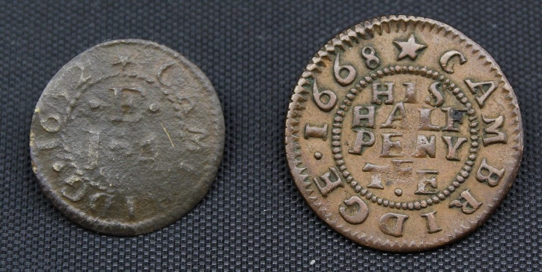 Cambridge, John Ewin (Candlemaker), Farthing, 1652, in copper alloy, 6h, m.m. star, (m.m.) [IO]HN • EWIN • IN, man dipping candles, rev. CAMBRIDG • 1652, •I •E •A in centre (Cooper [1845] -; Babington 22; Searle 20; Boyne & Williamson 38; SCBI Norweb I -; Dickinson, Cambs 38), softly struck to periphery, fair to fine, scarce; additionally, Thomas Ewin (Candlemaker), 'His Half Peny', 1668, in copper alloy, 12h, m.m. star, (m.m.) THOMAS • EWIN • IN, rosette stops, man making candles, rev. (m.m.) CAMBRIDGE • 1668, HIS | HALF | PENY | T E •E below (Cooper [1845], pp. 541; Babington 23; Searle 21; Boyne & Williamson 39; SCBI Norweb I, 382; Dickinson, Cambs 39), a pleasing token, very fine (2)