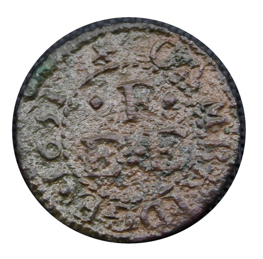 Cambridge, Trumpington Street, The Mitre Tavern, Edward and Elizabeth Farley (Innkeeper), Farthing, 1651, in copper alloy, 6h, m.m. star, (m.m.) AT • THE • MITER • IN, Bishop's Mitre, rev. (m.m.) CAMBRIDGE • 1651, •E •F •F in centre (Cooper [1845] pp. 541; Babington 24; Searle 22; Boyne & Williamson 40; SCBI Norweb I, 418; Dickinson, Cambs 40), surface roughness, otherwise struck very fine, very rare