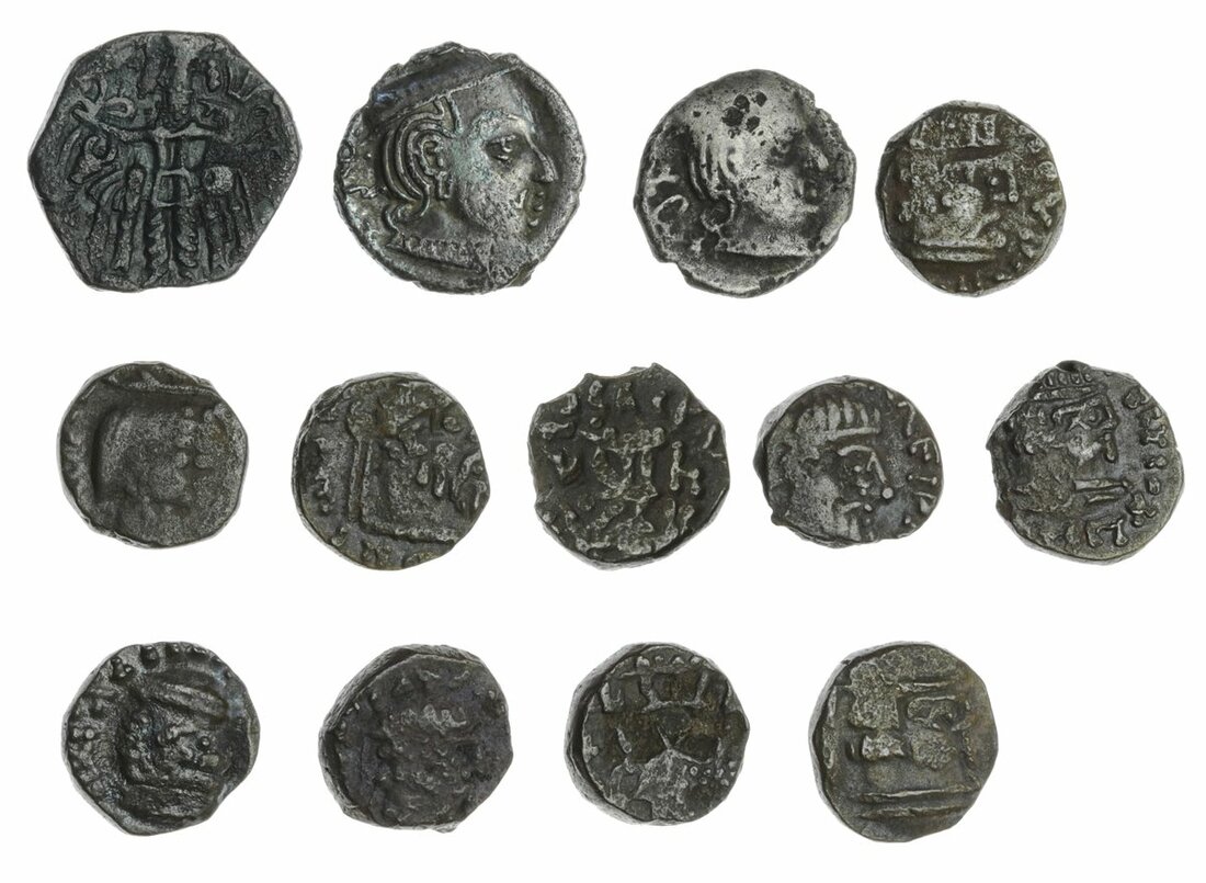 Kushano-Sasanian, Hormazd Kushanshah (c.271-353), AE Unit, king standing right, rev. Siva & Bull; Indo-Parthian, Gondophares (c. AD 30 - 55), AE Drachms (10), portrait / Pallas standing right, Western Satraps, Drachms (2), the first probably Vijayasena, date 16 -, the second Rudrasena II, date unclear (MAC 1275-77, 2636-37), 2702-2714, 2722-41), the first good fine, the second about fine, the last very fine (13)
