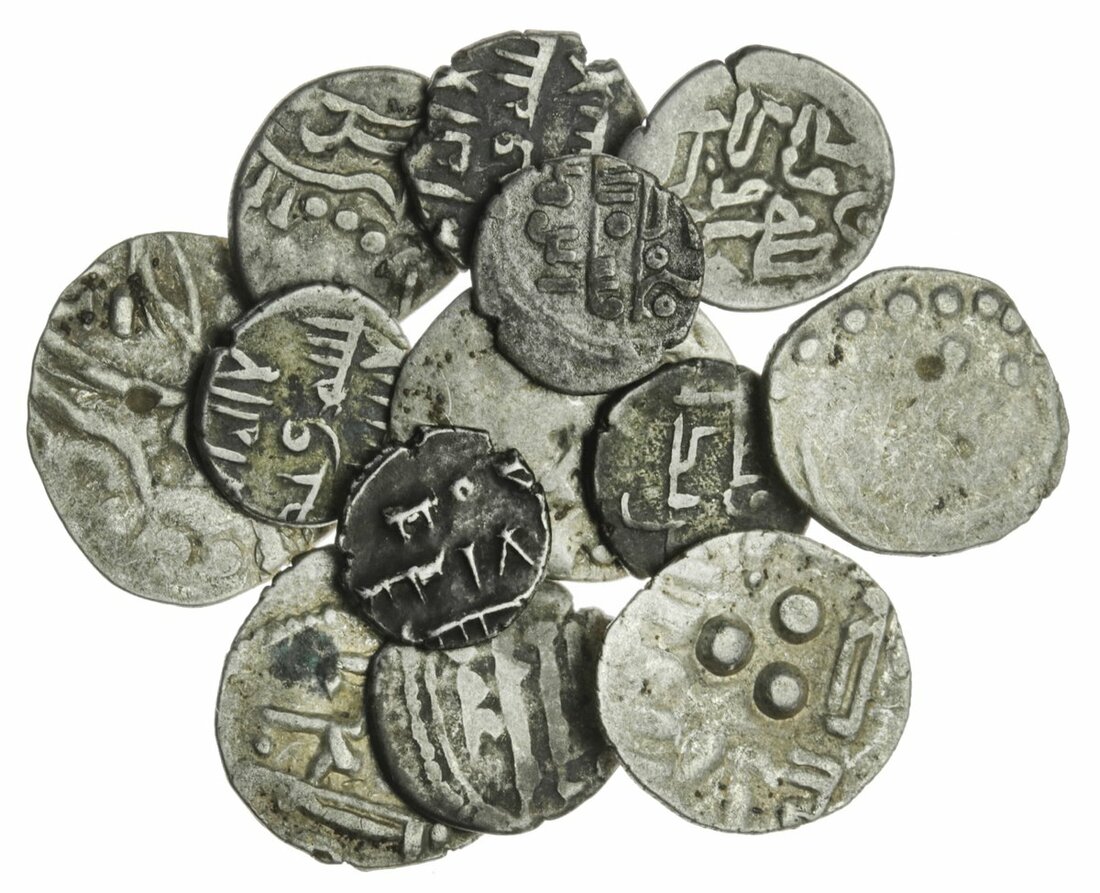 Amirs of Multan (c. 9th-10th century), Dammas (6), with three beads on obverse and name of amir beneath, legend both sides (2), both naming Muhammad (A.1504/5 var; G & G. AM 10), reverse with bust right in style of Kshatrap rulers (4), an interesting group, fine to very fine, rarely offered ; Habbarid (Amirs of Sind) (c. 9th-10th century), Dammas (7), one each of rulers Da'ud, 'Abd Allah, 'Umar, Ahmad, uncertain ruler possibly 'Abd al-Rahman, together with later issues, probably of Ahmad (2) (see A.1493-1502, G & G. AS 1-42 for type), most with clear names, generally fine, all scarce to rare (13)