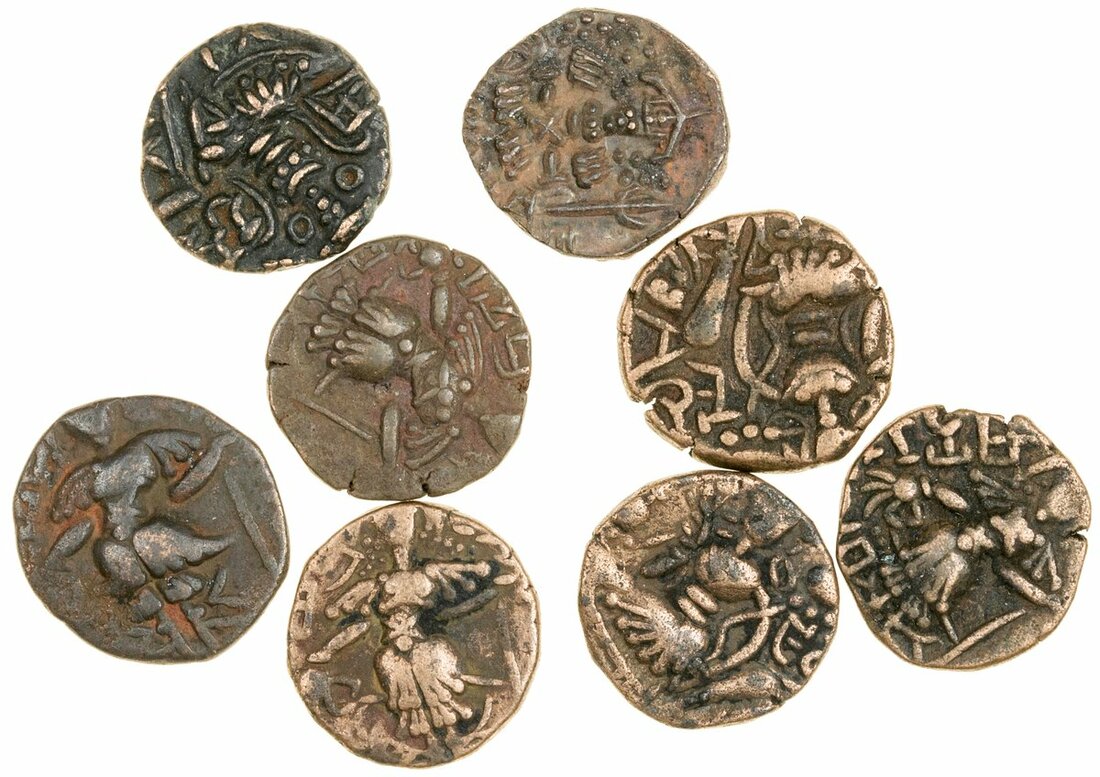 India, Kashmir Rajas (c.570-855), AE Staters (6), derivative of Toramana type, Didi Rana (979-1003), AE Stater, Jagadeva (1199-1213), AE Stater (MNI 155-158, 177, 193), very fine, later coins better (8)