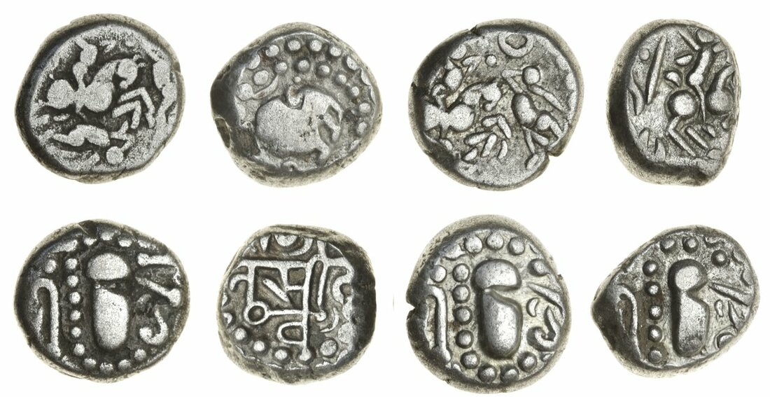 India, North Konkan, Silharas (c.11th-12th century), base Drachms (3), bust in style of Gadhaiya Paisas right, rev. horseman right, spearing enemies below, similar Drachm, attributed to Narasimhavarma I (c. 630-668), lion right within border of beads, rev. legend (MNI 649-52, 696-700), generally very fine (4)