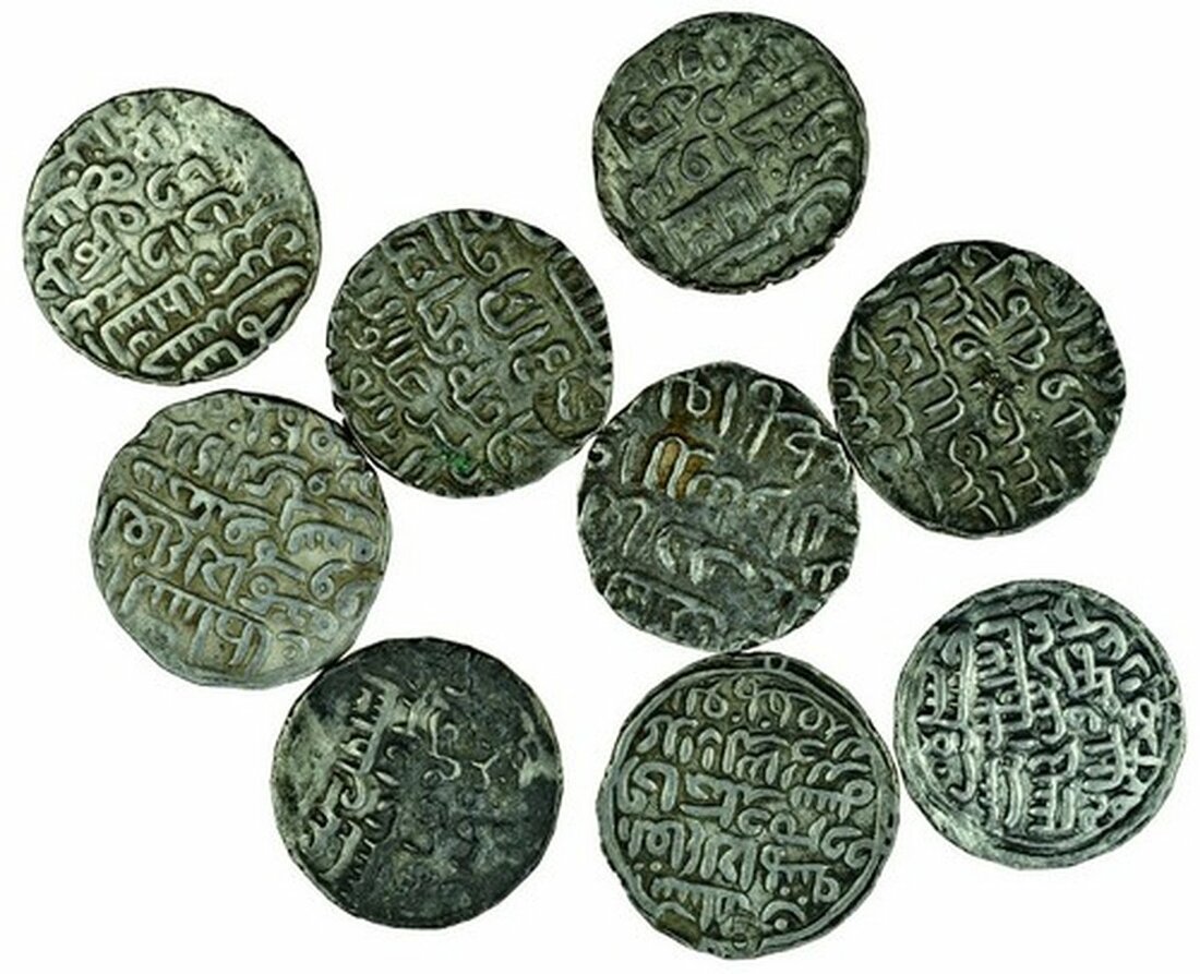 India, Sultans of Bengal, 'Ala al-Din Husain, Tankas (9), fourth victory type, Husainabad (3), Dar al-Darb, Khazana (2), Fathabad, mintless types (2) (G & G. B.738, 739, 741, 744, 748), fine to very fine (9)
