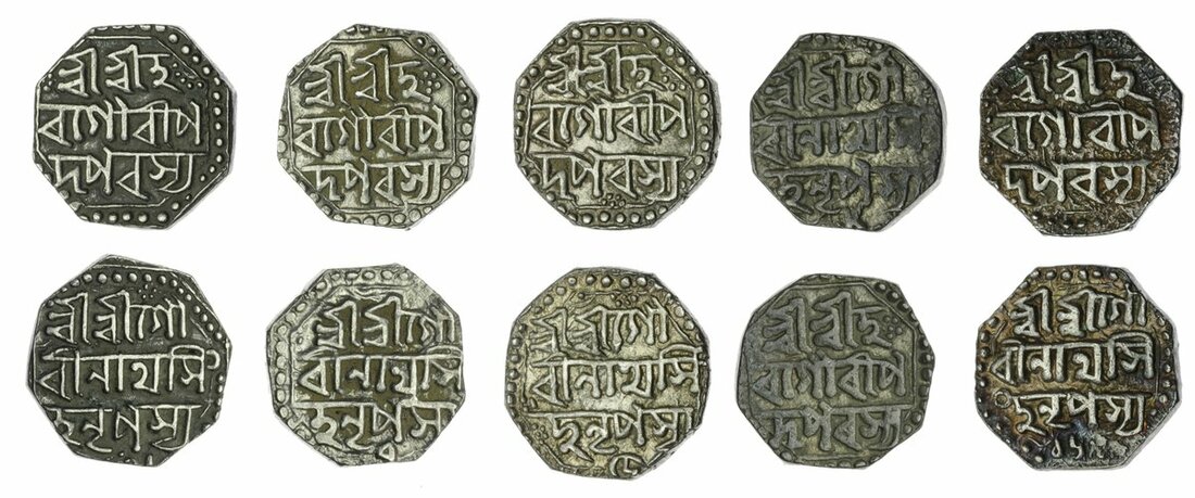 Assam, Gaurinatha Simha (1780-95), octagonal Half-Rupees (5), undated, year 5, year 6 (partially visible), year 7, year 8, year 16 (RB. R68.3, 69.4, 70.4, 40.2, 71.1, 76.1; KM. 205), about very fine to good very fine (5)