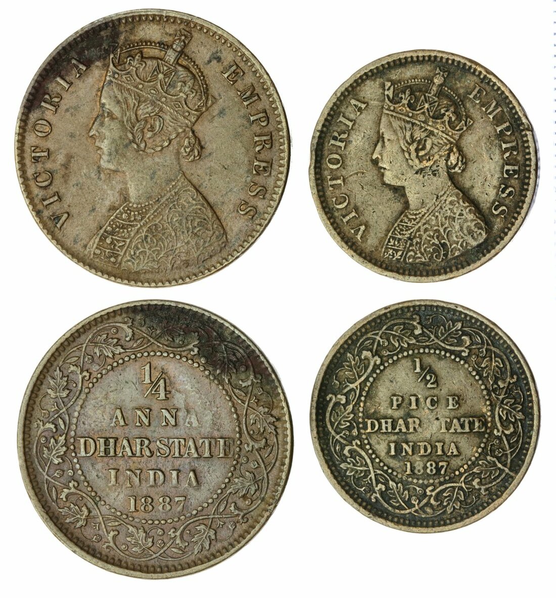 Dhar, Anand Rao III (1860-1898), AE Quarter-Anna, Half-Pice, both 1887, in the name of Victoria as Empress (KM 12, 13), very fine and about very fine (2)