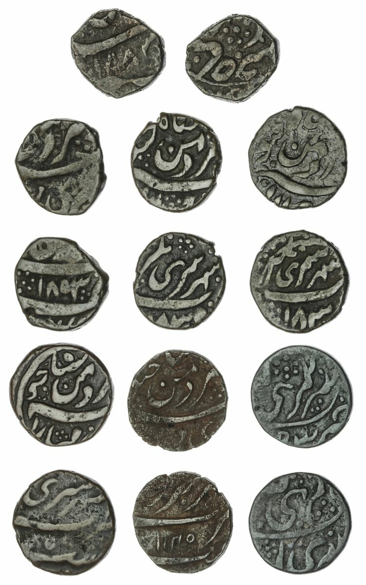 Garhwal, Lallat Shah, (1772-81), AE Tacas (2), VS 1835, Parduman Shah (1785-1803), AE Tacas (3), VS 1845, 1853 (2), Girvan Yuddha (1803-16), AE Taca, 1858 (date unclear), Sudarshan Shah (1815-59), AE Taca, VS 1883, all Śrinagar mint (KM.C15, 25, 30, last coin not listed), very fine, some scarce (7)
