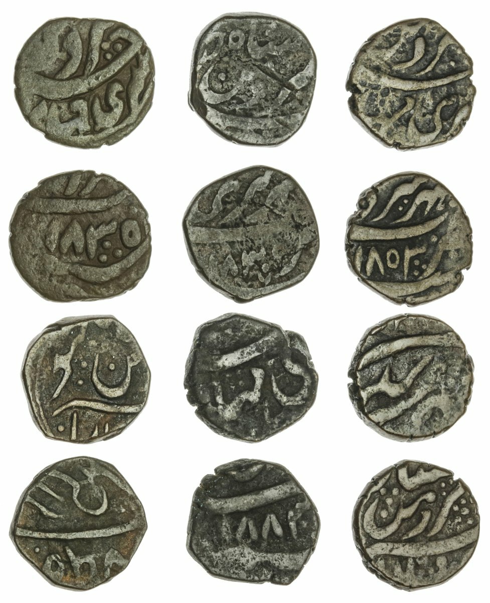 Garhwal, Lallat Shah, (1772-81), AE Taca, VS 1835, Parduman Shah (1785-1803), AE tacas (3), VS 1845 (retrograde), 1853, date not on flan (2), Sudarshan Shah (1815-59), AE Tacas (2), VS 1883, all Śrinagar mint (KM.C15, 24, 25, last coin not listed), fine to very fine, some scarce (6)