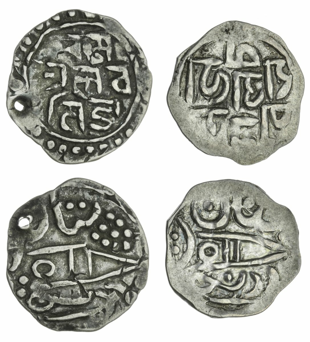 Ladakh (1842-50), AR Ja’u (2), 2.04, 2.01g, in the name of Gulab Singh, obverse with 3-line Nagari legend Raja Gulab Singh, rev. plain katar with circle on hilt (Rhodes, Garhwal and Ladakh 29; KM. 7.2), one holed and toned, very fine, scarce (2)