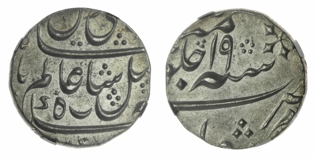 (†) East India Company, Bengal Presidency, in the name of Shah 'Alam II, Rupee, Murshidabad, ry.19, Eighth-Rupee, same date and mint, both hand-struck type (Pr. 147 var, 151; KM 81.3, 84.2), the first graded by NGC UNC details (countermarked edge, cleaned), the second fine, both scarce (2)