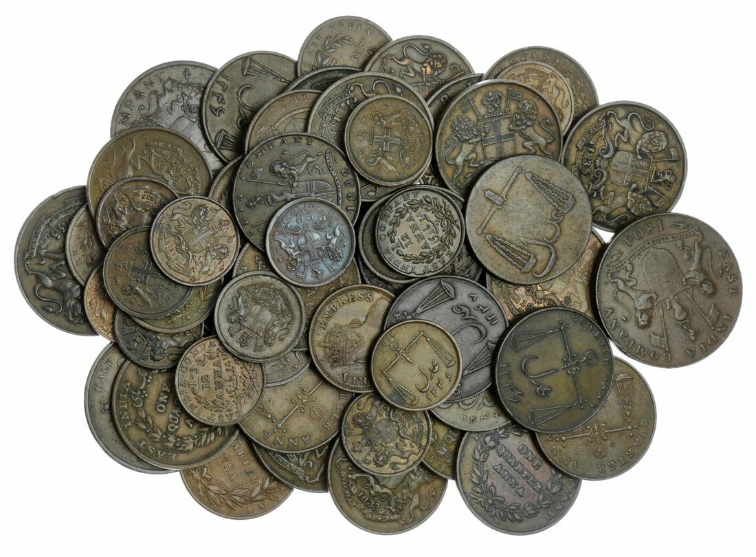 East India Company, Uniform Coinage, AE Half-Anna (6), Quarter-Anna (16), Half-Pice (5), 1/12-Anna (12), Bombay Presidency, steam mint issues, AE Half-Anna (4), Quarter-Anna (9), 1/12-Anna (3), various dates and mints, generally very fine (55)