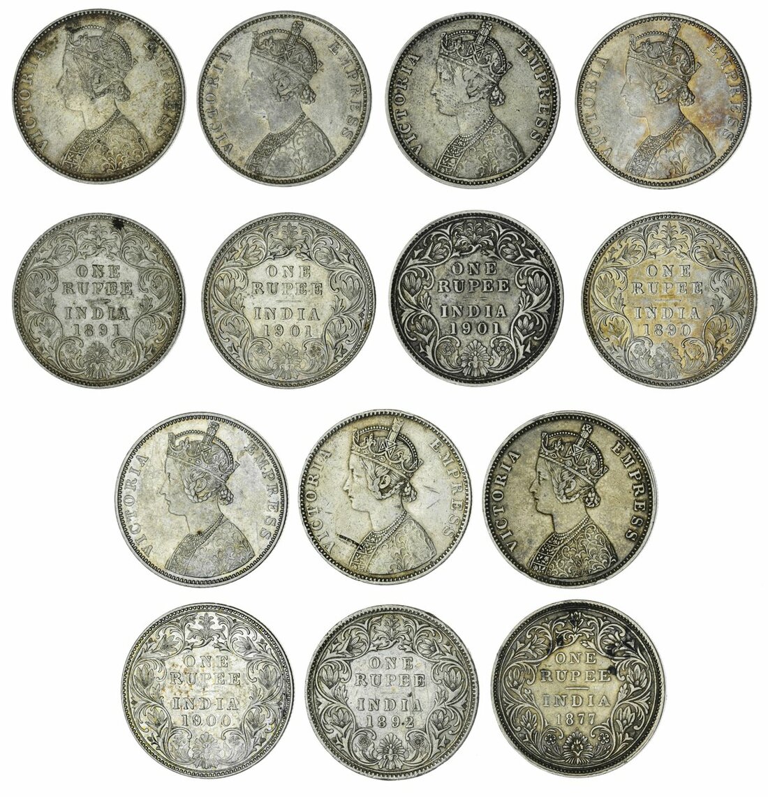 British India, Victoria, Rupees (7), 1877, 1890, 1891, 1892, 1900, 1901 (2), all Bombay mint, one of the 1901 Rupees good fine, but otherwise very fine or better (7)