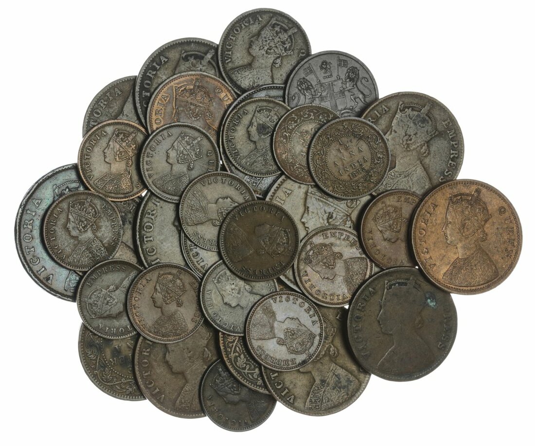 British India, Victoria, AE Half-Annas (3), 1862 (2) 1877B, Quarter Annas (10), 1862 (3), 1883, 1885, 1886, 1887, 1893, 1897, 1900, Half-Pice (5), 1853C, 1862 (2), 1885, 1888, 1/12-Annas (15), 1876 (2), 1883 (2), 1886 (2), 1887, 1890, 1891 (2), 1895 (2), 1898, 1899, 1901, generally fine, the lower denominations with some better coins (33)