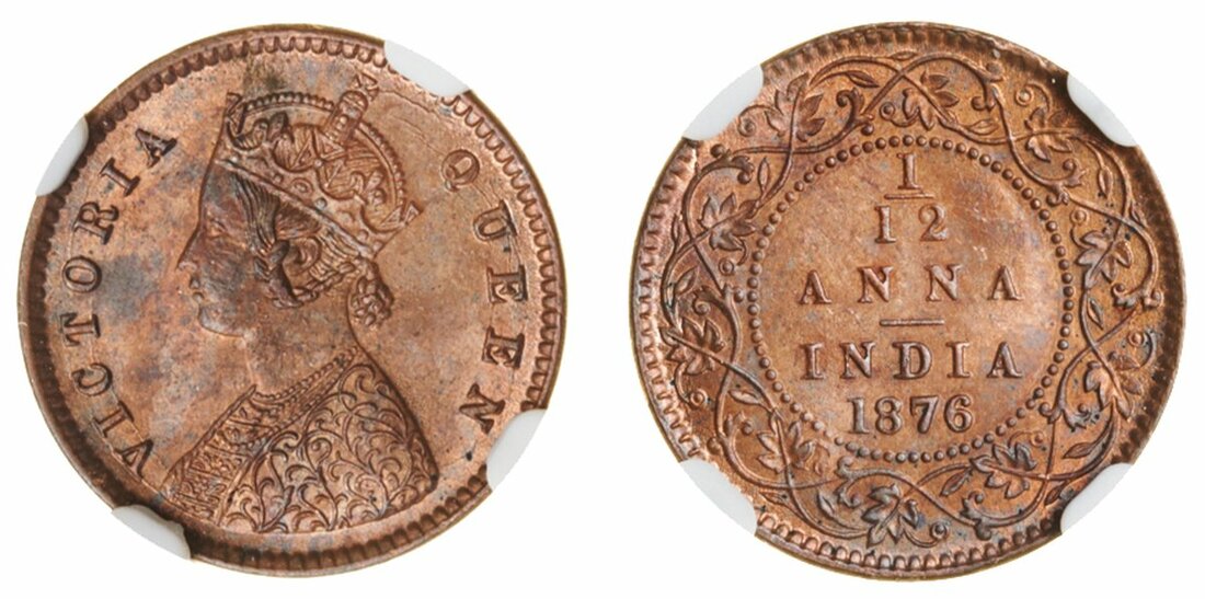 British India, Victoria (1837-1901), AE 1/12-Anna, 1876 C (S & W 5.62; Pr. 785), graded by NGC MS64 RB