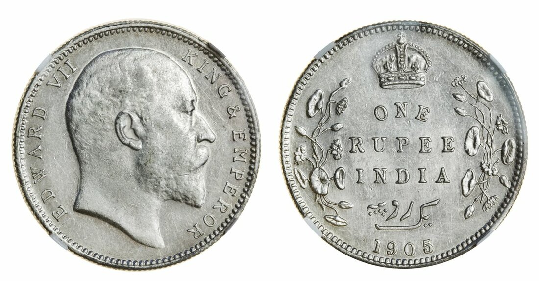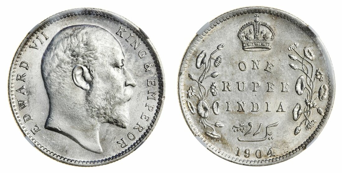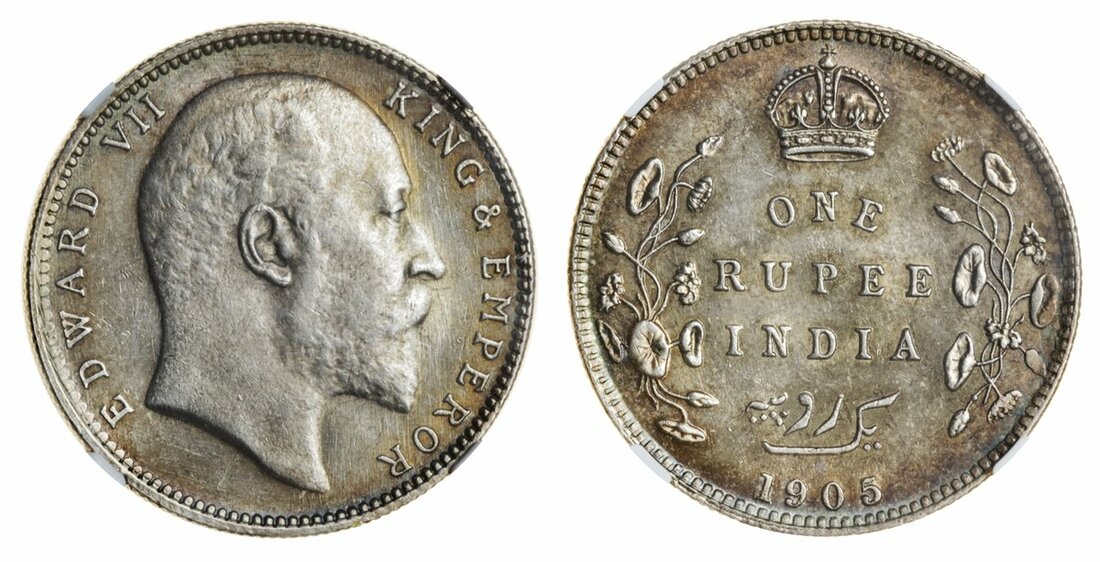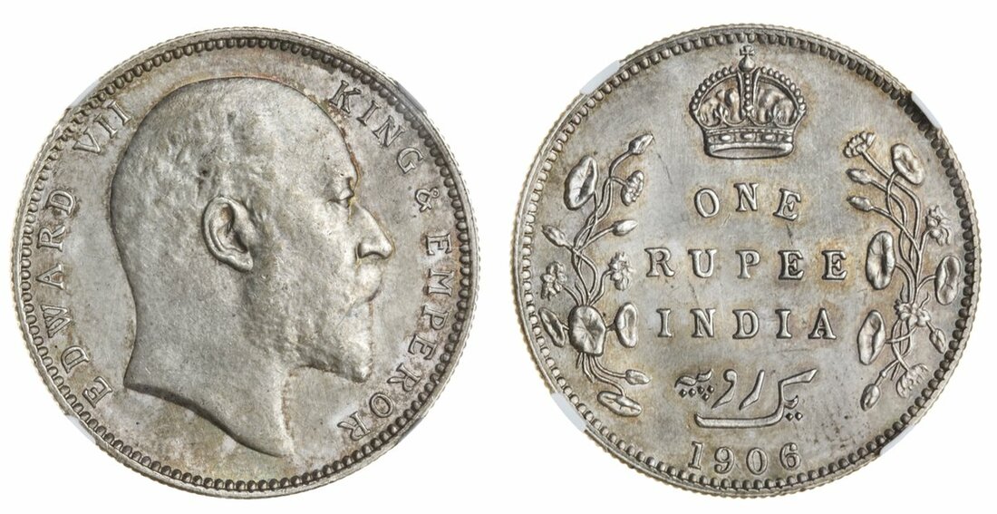 British India, Edward VII (1902-11), Rupees (4), 1904 B, 1905 B (2), 1906 B (S & W 7.25, 7.29, 7.33; Pr. 200, 201, 202), all graded by NGC, the first AU55, the others all AU58 (4)