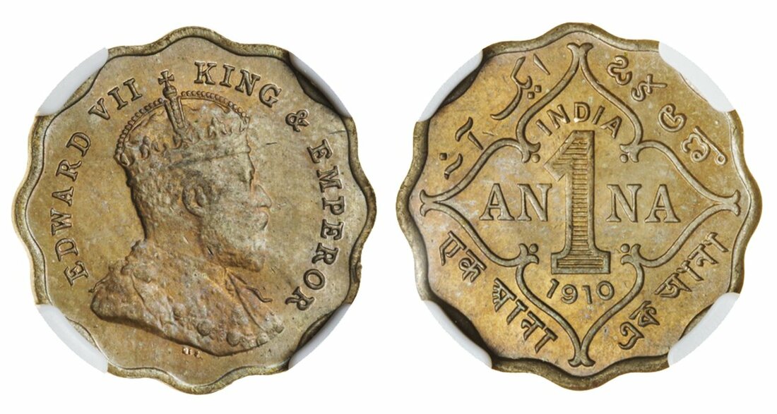 British India, Edward VII (1902-11), Cu.Ni. 1-Anna, 1910 B (S & W 7.150; Pr. 929), graded by NGC MS 65, with attractive golden tone