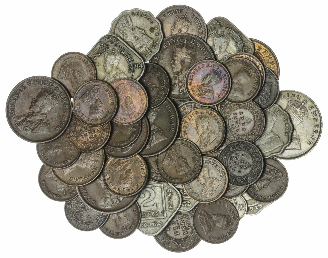 British India, George V, base metal coins (56), Cu.Ni. 8-Annas, 1919, 4-Annas, 1919 (2), 2-Annas (4), 1918 (2), 1934, 1936, 1-Anna (2), 1926, 1936, AE Quarter-Annas (6), 1918, 1919, 1920, 1926, 1934, 1935, Half-Pice (5), 1915, 1917 (2), 1927, 1936, 1/12-Annas (36), 1912 (2), 1913 (2), 1914 (3), 1915 (2), 1916 (3), 1917 (2), 1919 (2), 1920 (3), 1921, 1923, 1925 (5), 1926 (2), 1931, 1932 (4), 1933 (2), 1936, generally fine or better, some of the 1/12-Annas about uncirculated, with lustre (56)