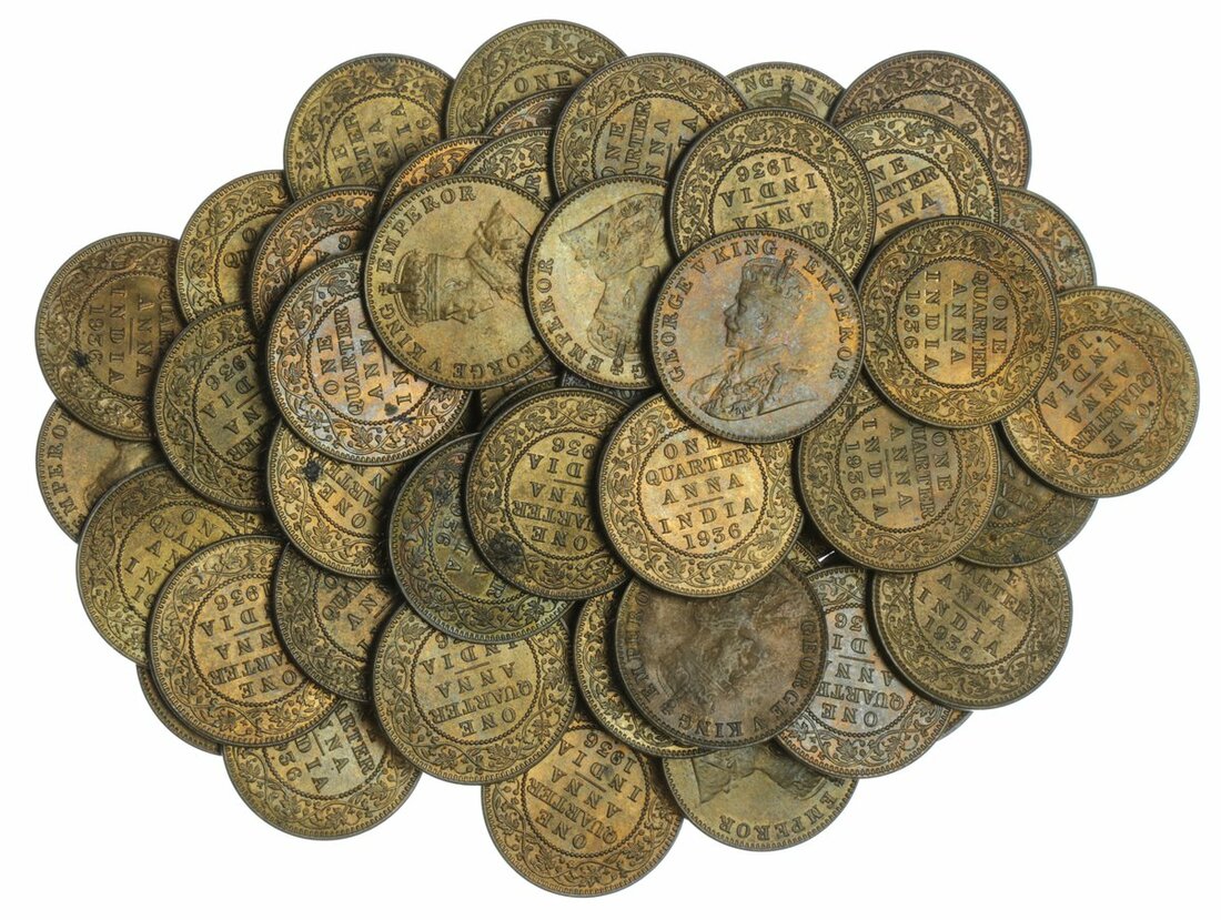 British India, George V, AE Quarter-Annas (57), 1936 Bombay (56), 1936 Calcutta (1), mostly about uncirculated or better, with lustre (125)