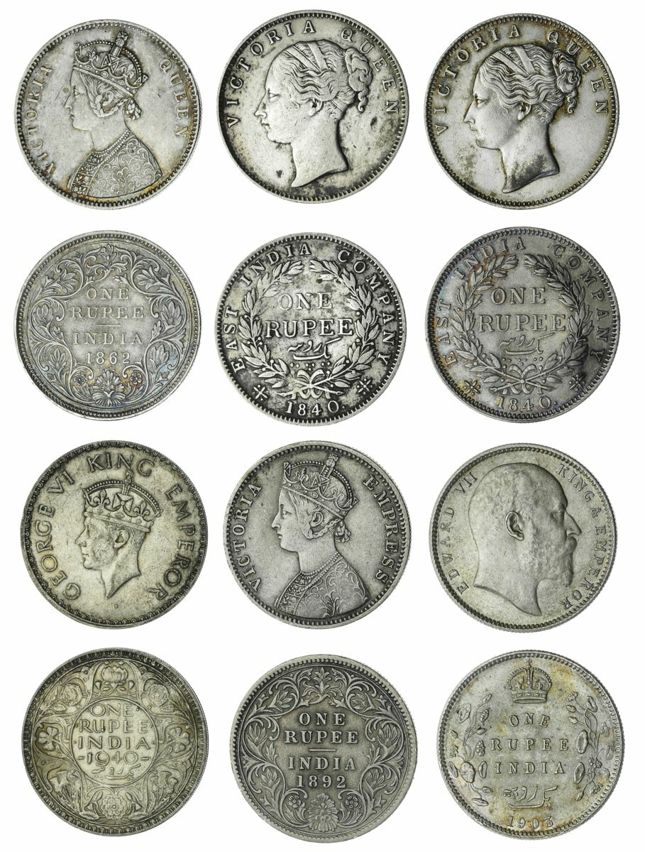 British India, Rupees (6), 1840 (2), 1862, 1892, 1903, 1940, generally very fine or better (6)